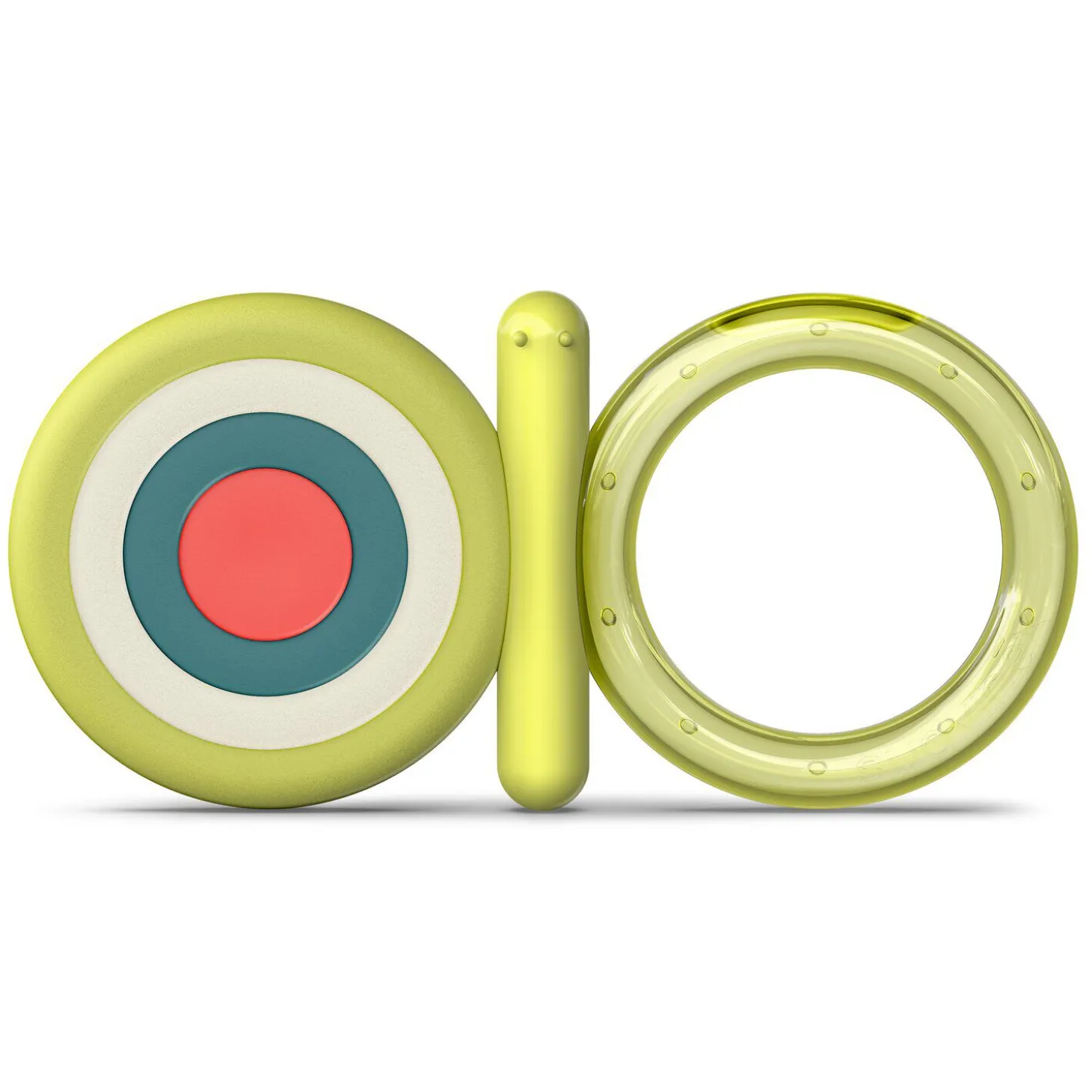 Aide au développement moteur fin et perceptif : le bébé commence à reconnaître formes et couleurs. L’eau froide soulage les gencives. A refroidir au réfrigérateur.