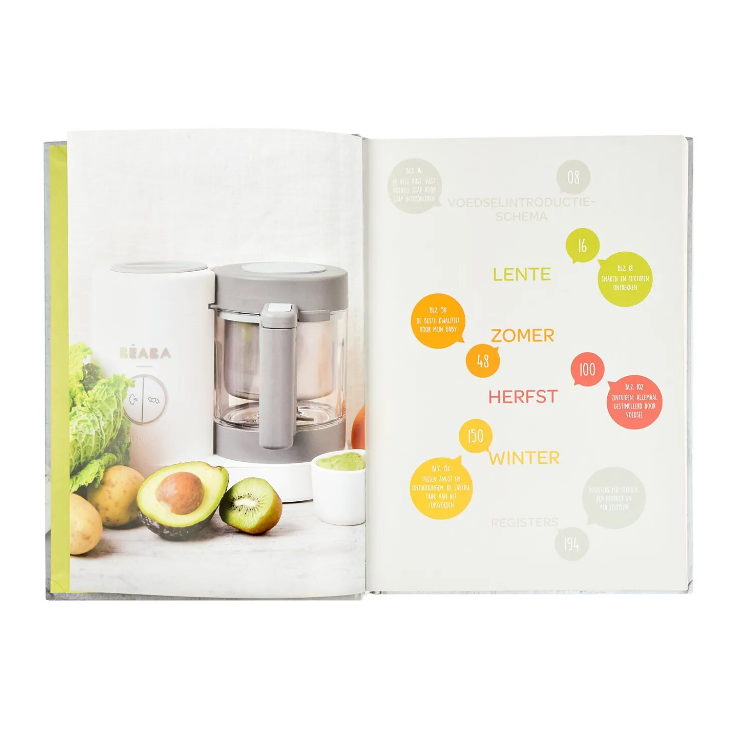 Conçu pour être utilisé avec un Babycook Beaba®, ce livre propose des recettes savoureuses et faciles à réaliser, classées par saison et par âge pour offrir une alimentation variée et équilibrée tout au long de l’année. Chaque recette est accompagnée d’illustrations colorées qui rendent la préparation des repas plus amusante et engageante pour les parents et les enfants. Les suggestions incluses permettent d’adapter les recettes aux différents âges de l’enfant pour que chaque repas soit approprié à son stade de développement. Le livre est écrit en collaboration avec Christophe Saintagne, un chef renommé, et Laurence Haurat, une nutritionniste, pour que toutes les recettes soient à la fois délicieuses et nutritives. Leur expertise combinée assure que chaque plat est non seulement appétissant, mais également bénéfique pour la croissance et la santé de votre enfant.