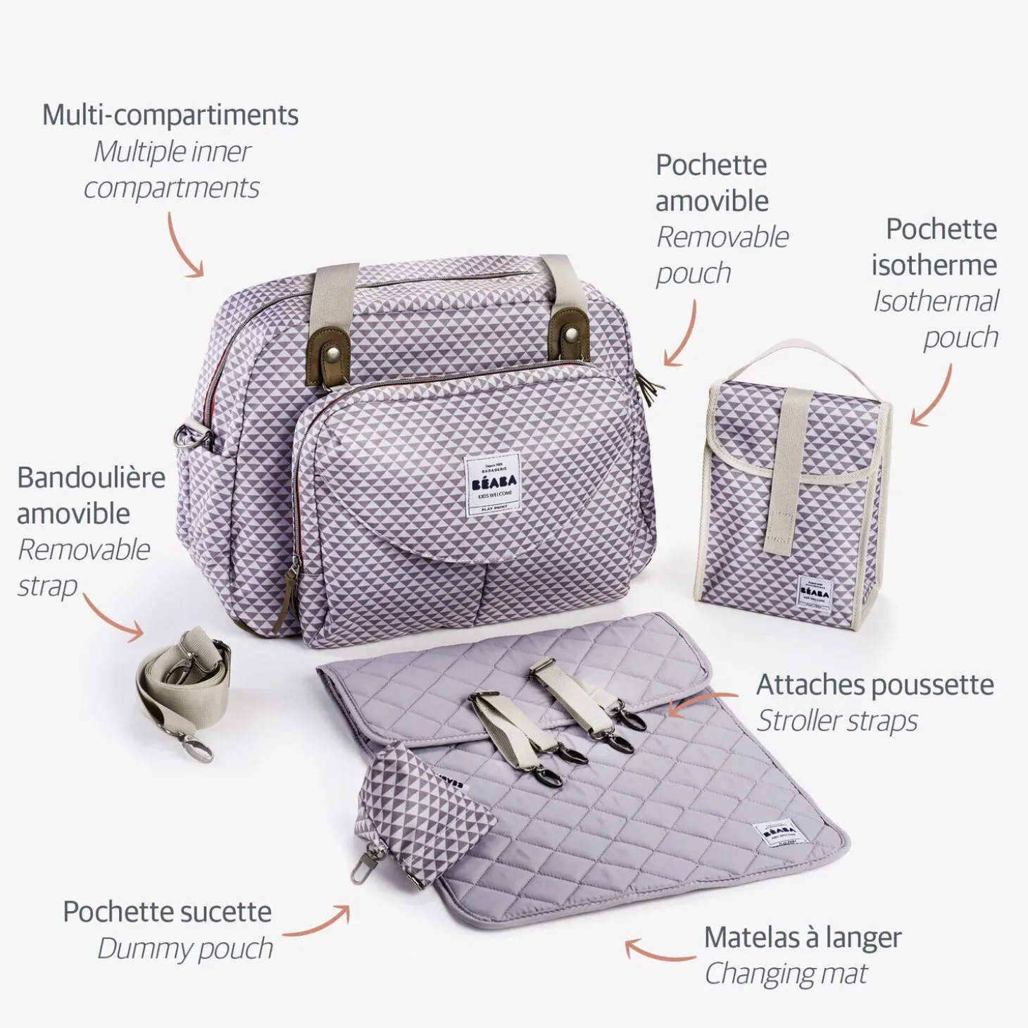 Sac à langer Genève Play print Gris/Corail